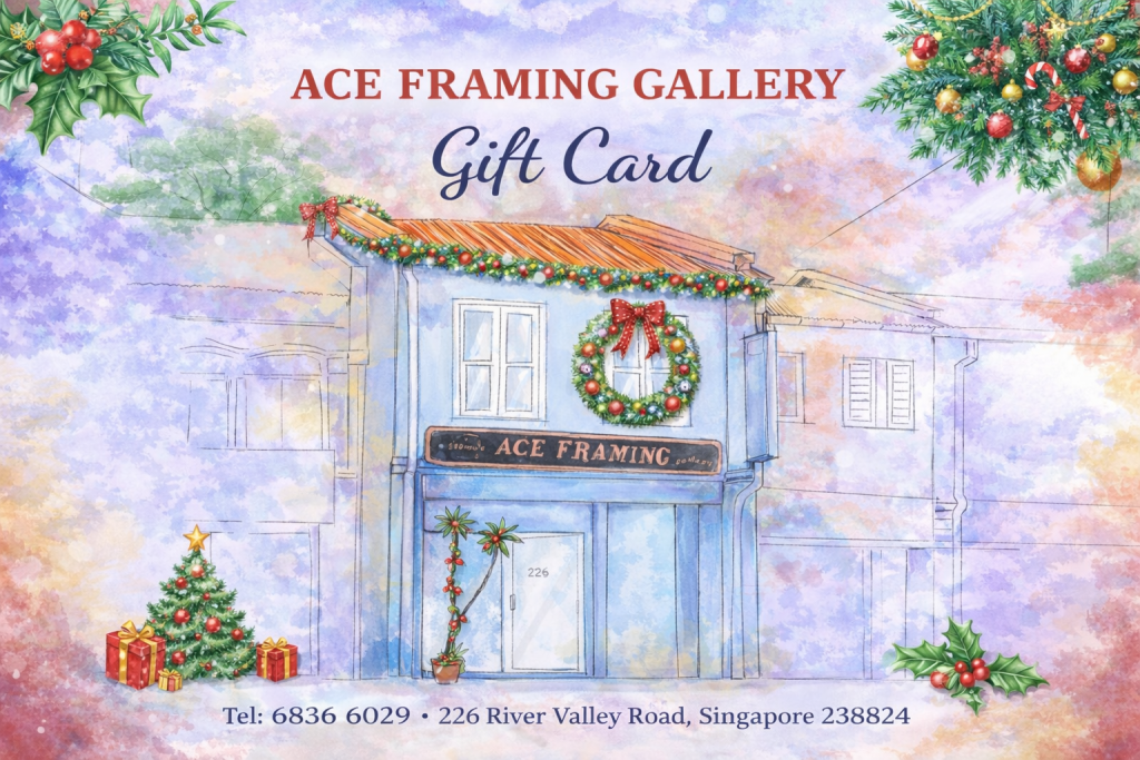 Looking for a meaningful Christmas present? Our Ace Framing Gallery Gift Card is a beautiful and practical choice. Designed with a charming watercolor sketch of our shop and festive holiday elements, it’s perfect for art lovers and anyone who appreciates thoughtful details.